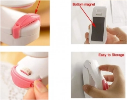 A kompakt, kézi zacskóhegesztő otthoni használatra lehetővé teszi a műanyag csomagolások gyors lezárását, és megőrzi az élelmiszerek frissességét. Néhány másodperc alatt használatra kész, a hátoldalán található praktikus mágnessel hűtőre rögzíthető, valamint távtartó tartóval a biztonság érdekében. 2× AA elemmel működik.