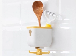 Egyszerű telepítés: a tartó ragasztószereléssel van ellátva, amely biztosítja a biztonságos rögzítést bármely sima felületen. Használata nemcsak a konyhában alkalmas, ahol különféle konyhai eszközöket akaszthatunk fel, hanem a fürdőszobában is szivacsok és törölközők számára.