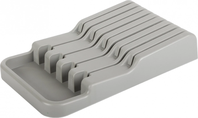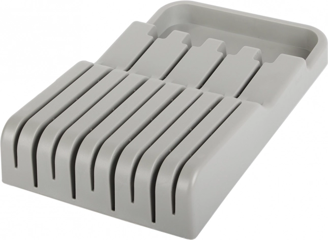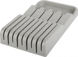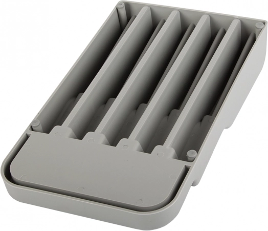 A késrendező kiváló választás minden modern és hagyományos konyhához. Tartós műanyagból készült elegáns szürke színben, amely hosszú élettartamot biztosít. A kompakt méreteknek köszönhetően könnyen elfér bármely szabványos konyhai fiókban, optimalizálva a helyet.