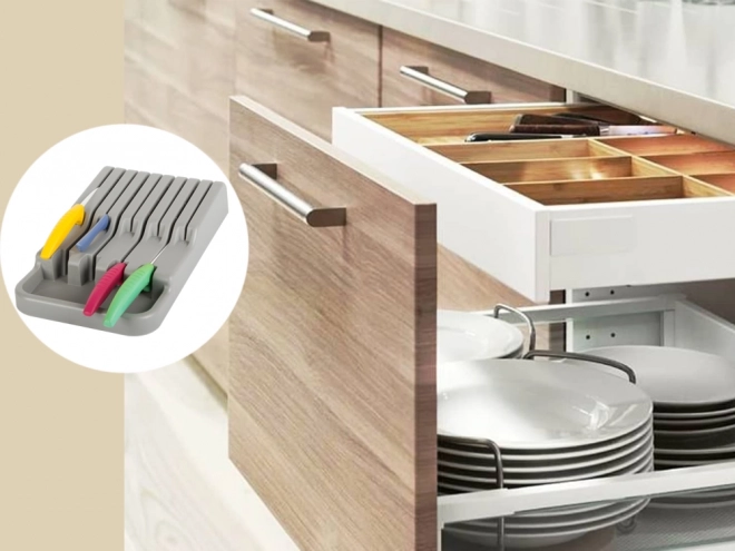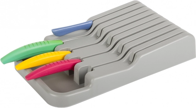 Elegáns és funkcionális késrendező segít rendben és biztonságban tartani a konyháját. 9 rekeszes kialakítása lehetővé teszi a kések könnyű és áttekinthető elhelyezését a fiókban.