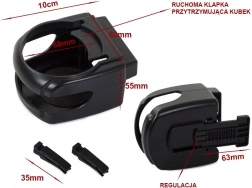 A csúsztatható alsó sín lehetővé teszi a tartó dőlésszögének beállítását, így az ital mindig kéznél van, és nem zavarja a szellőzés vezérlését.