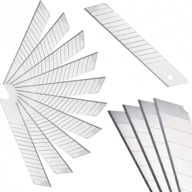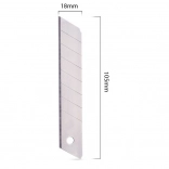 A készlet 10 darab, 18 mm széles tördelhető pótpengét tartalmaz, amelyek ideálisak a pontos, tiszta vágásokhoz. A szegmenses kialakítás lehetővé teszi a megkopott rész egyszerű letörését, így azonnal folytathatja a munkát új, éles heggyel.
