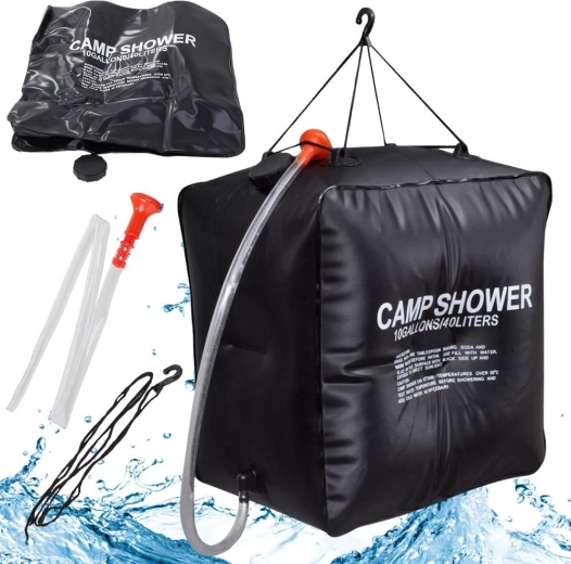 Praktikus, 40 l kapacitású napelemes kempingzuhany, amely bárhol a természetben meleg vizet biztosít. Csak töltsd meg és tedd ki a napra – a sötét felület gyorsan felmelegíti a vizet. Ideális kempingezéshez, lakóautóhoz, strandra és kertbe. A hajlékony tömlőnek, zuhanyfejnek és állítható átfolyásnak köszönhetően használata kényelmes és takarékos.