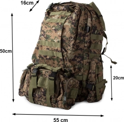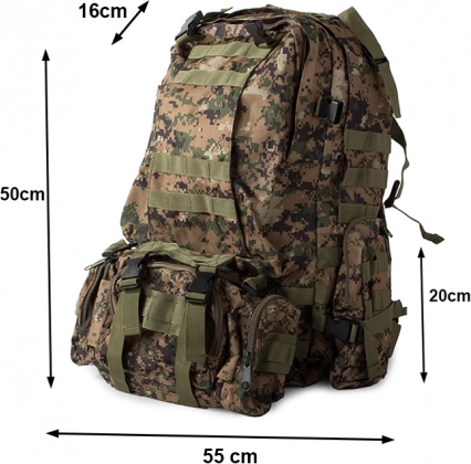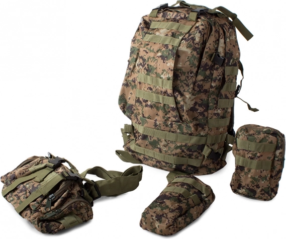 Ez a hátizsák nagy fő rekesszel rendelkezik további fakkokkal, beleértve az eltávolítható oldalsó zsebeket és az eltávolítható övtáskát, amely külön is viselhető. A MOLLE rendszer lehetővé teszi további zsebek és modulok hozzáadását.