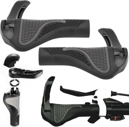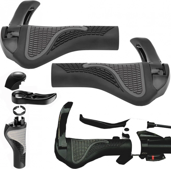 Ezek az anatómiai kialakítású, csúszásmentes gumiból készült markolatok hosszabb túrákon is kényelmet biztosítanak. A puha felület tompítja az ütődéseket és segít a csuklót helyes pozícióban tartani, miközben az integrált alumínium szarvak lehetővé teszik a fogás változtatását és csökkentik a kéz fáradását.