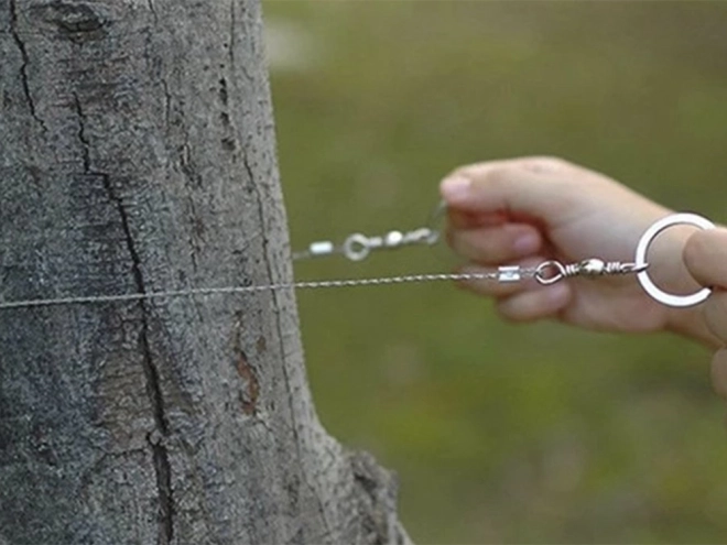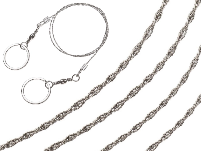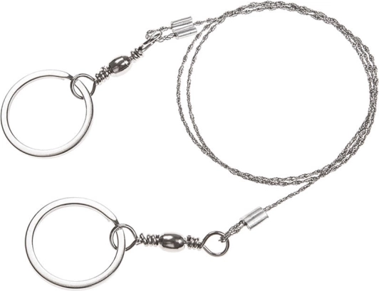 A praktikus drót fűrész a túlélő-, EDC- és kempingfelszerelés elengedhetetlen része. A sodrott rozsdamentes kábel ezernyi finom foggal gyors és hatékony vágást biztosít minimális tömeggel. A fémgyűrűk közvetlenül foghatók, vagy fa botokkal hosszabbíthatók a még kényelmesebb munkáért.