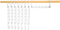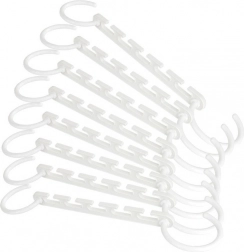 Fehér színben készült, amely könnyen illeszkedik bármely gardróbszekrény belsejébe, és a kompakt méretei biztosítják a diszkrét beilleszkedést. A csomagolás nyolc szervezőt tartalmaz, ami lehetővé teszi több ruha rendszerezését.