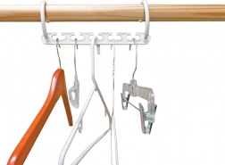 Az univerzális fogastartó úgy lett megtervezve, hogy optimalizálja a szekrény terét és megakadályozza a ruhák gyűrődését. Ezzel a szervezővel könnyen rendszerezheti a ruháit és tökéletes rendet tarthat.