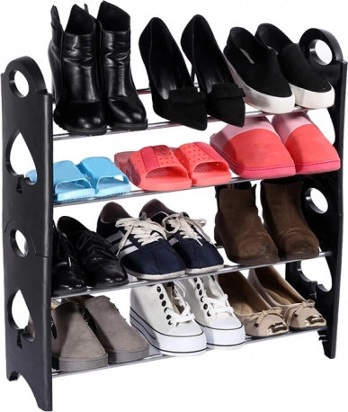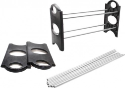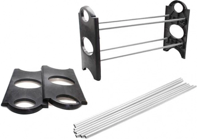A szegmentált kialakítás fém (krómozott) csöveket kombinál strapabíró műanyag oszlopokkal. Minden csövön három szerelőnyílás található, így a polcok magassága könnyen igazítható legyen akár magassarkúhoz, akár sportcipőhöz. A polc további szintekkel bővíthető – két készlet összekapcsolásával megduplázhatja a kapacitást. Az összeszerelés gyors, szétszerelve pedig minimális helyet foglal.