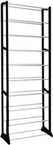 Praktikus cipőtartó 10 polccal, amely akár 50 pár lábbelit is elbír, és rendezetten tartja az előszobát és a gardróbot. Könnyű, mégis stabil felépítés műanyag oszlopokkal és alumínium csövekkel: könnyű összeszerelés, állítható szintszám és mindössze 25 cm-es mélység a maximális helykihasználásért.