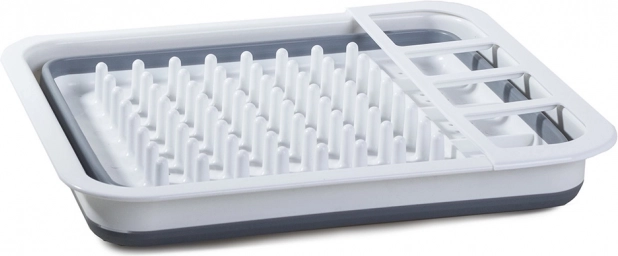 Ez a szilikon edényszárító forradalmi segítő minden otthon számára. Gyorsan szétnyitható néhány másodperc alatt, és amikor nincs rá szükség, összecsukható és könnyen tárolható a szekrényben. Van hely tányéroknak, csészéknek és egy külön szárító az evőeszközök számára, ami multifunkcionális eszközzé teszi.