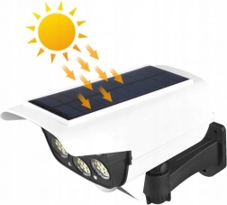 Élvezze a biztonságot és nyugalmat ezzel a napelemes kamera makettel, amely fejlett mozgásérzékelővel van felszerelve. 77 LED dióda erős megvilágítást biztosít, ideális éjszakai használatra. Az energiamegtakarítás a napelemes tápellátásnak köszönhető, így nincs szükség extra kábelekre.