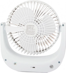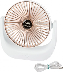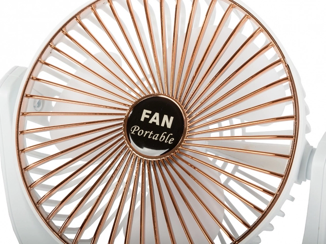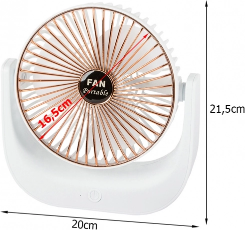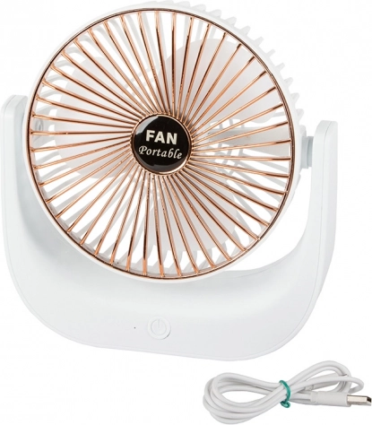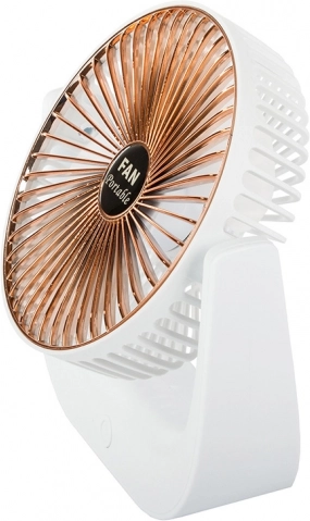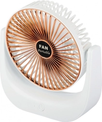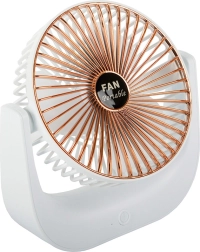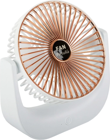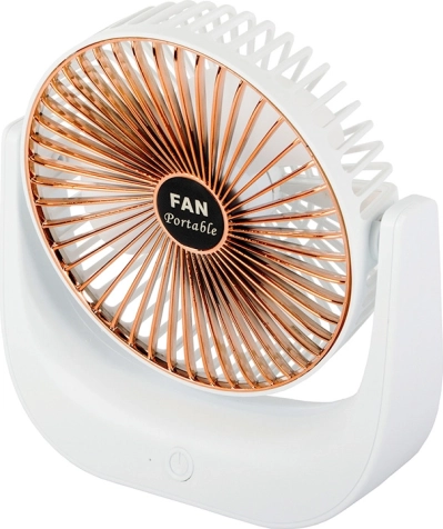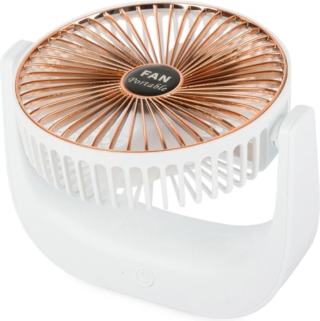 A kompakt, vezeték nélküli asztali ventilátor kellemes felfrissülést biztosít otthon, az irodában és utazás közben is. Kínál csendes működést, 3 sebességfokozatot, újratölthető Li‑ion akkumulátort és USB‑töltést. Stílusos fehér‑arany kivitel és dönthető kialakítás a légáram pontos irányításához.