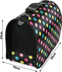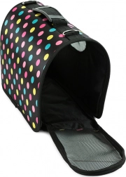 A maximális kényelem érdekében a táska szellőzőrácsokkal és ablakkal van felszerelve, amelyek biztosítják a megfelelő levegőcirkulációt. Elegáns, pöttyös dizájnja minden alkalomhoz illik, akár busszal, vonattal vagy az állatorvoshoz utazik.