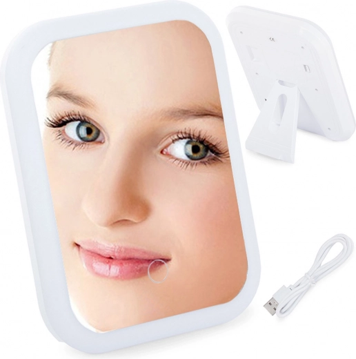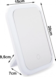 Élvezze a tökéletes sminket a LED megvilágítású kozmetikai tükörrel. Ez a tükör nagy teljesítményű LED világítással van felszerelve, amely biztosítja a világos és egyenletes megvilágítást. Az irányítás egyszerű az érintőkapcsolónak köszönhetően, amely a tükör felületébe van integrálva. Ezen kívül táplálható három AA elemmel vagy USB kábellel.