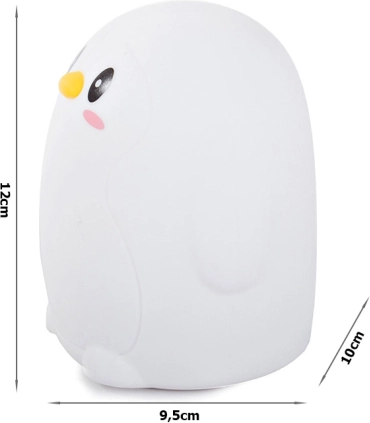 Nyújtsa gyermekeinek gondtalan éjszakai alvást ezzel a puha szilikon éjszakai fénnyel pingvin formában. A fény érintésre kellemes szilikonból készült, amely ellenáll a leesésnek és az összezúzásnak. Használható lámpaként, illetve puha plüssként is, amelyet a gyerekek magukkal vihetnek az ágyba.