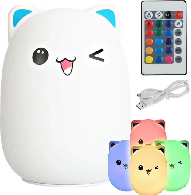 Ez a macska formájú éjjeli fény puha, tapintásra kellemes szilikonból készült, amely ellenáll az esésnek és összetörésnek. A gyerekek vihetik magukkal az ágyba, mint egy plüss játékot, amely segít legyőzni a sötétségtől való félelmet.
