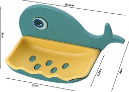 Ez a praktikus bálna alakú szappantartó ötvözi az aranyos megjelenést és az okos funkcionalitást. Az alján lévő vízelvezető nyílások lehetővé teszik a víz szabad elfolyását, így a szappan tovább tart és nem csúszik. A falra szerelhető kivitelnek köszönhetően helyet takarít meg a mosdón, és rendet tart a környezetében.