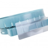 Az üzemi méretek 26 cm átmérőjűek és 7 cm teljes magasságúak, ez a szervező modern tárolási megoldást kínál, két színben kapható: kék és sárga.