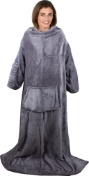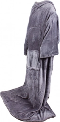 Az univerzális, ujjakkal ellátott takaró remek választás hűvös otthoni napokra. A puha polár selymes tapintású, kellemesen melegít, és géppel könnyen mosható. A tágas ujjaknak köszönhetően kényelmesen szabadon marad a keze a távirányítóhoz, könyvhöz vagy bögréhez.