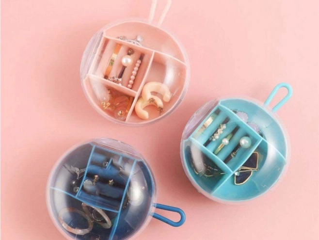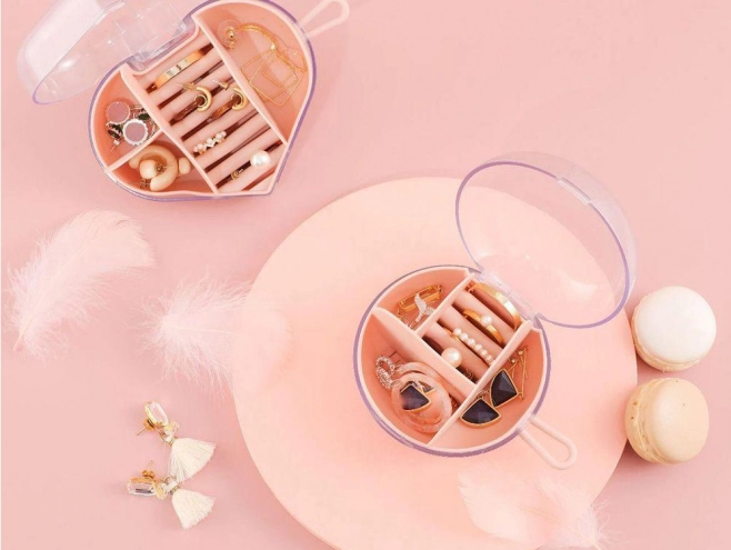 - Tágas elrendezés: rekeszek fülbevalóknak, nyakláncoknak, karkötőknek és gyűrűknek