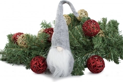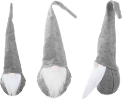 A szürke, elegáns karácsonyi manó univerzális dísz, amely illik a nappaliba, gyerekszobába és a kandalló mellé is. A sapkában lévő hajlítható drót könnyű formázást tesz lehetővé – a manó állhat, ülhet vagy lógatható, ahogy épp szeretné. A finom textil kidolgozás fokozza a meghitt téli hangulatot.