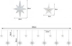 A függöny tartalmaz 6 nagy csillagot és 6 kisebb csillagot, a teljes hossza pedig 5 m. Választhat 8 különféle fényprogram közül a kívánt hangulat megteremtése érdekében, a mellékelt távirányító segítségével.