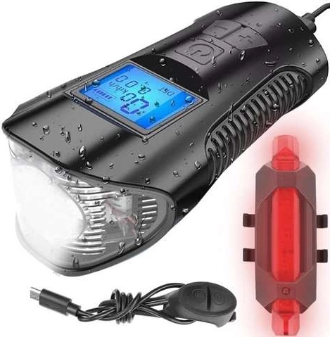 Első LED kerékpárlámpa számlálóval – Hátsó lámpával