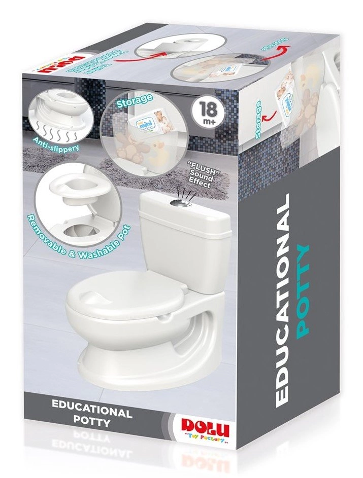 A bili felső részén található gomb autentikus öblítési hangot ad ki, ami szórakoztatja a gyerekeket és motiválja őket a rendszeres vécéhasználatra.