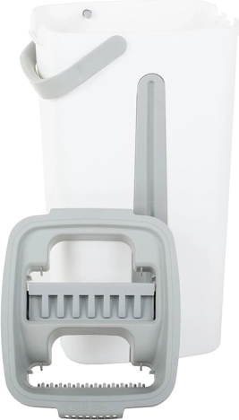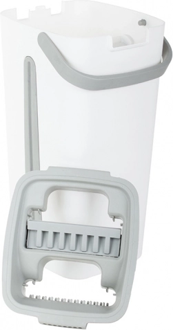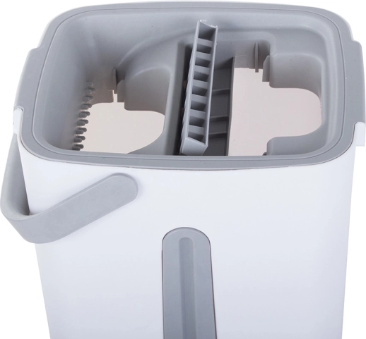 A felmosó egy innovatív kétkamrás vödörrel rendelkezik, amely elválasztja a tiszta és a koszos vizet. A préselés során gyorsan felszívja a szennyeződéseket és a vizet, ami még hatékonyabbá teszi. A felmosó fogantyúja összehajtható és csúszásmentes, ami megkönnyíti a kezelést és tárolást.