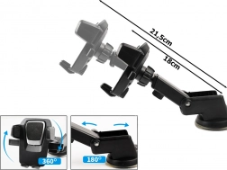 Praktikus autós tartót kínálunk, amely lehetővé teszi a biztonságos vezetést a telefon kéznél tartásával. A szélvédőre történő szerelés gyors és erős tapadókorong révén biztosít stabil rögzítést.