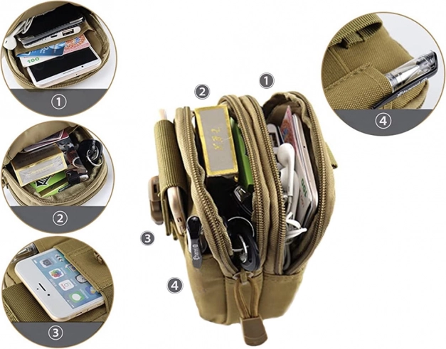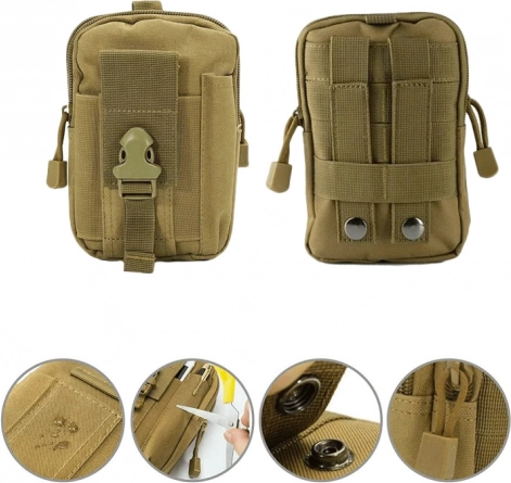 Kompakt, taktikai MOLLE rendszerű övtok, ideális túrázáshoz, kempingezéshez és mindennapi hordáshoz. Kínál 2 cipzáras fő rekeszt, több zsebet az áttekinthető rendszerezéshez és elöl telefontartót állítható pánttal. Tartós, vízálló anyag és erős varrások védik a holmikat, míg a párnázott belső tompítja az ütéseket. Övre, hátizsákra vagy karabinerre is rögzíthető.