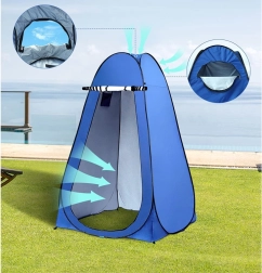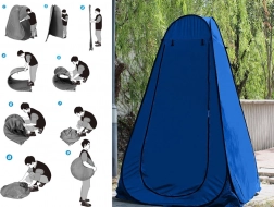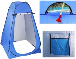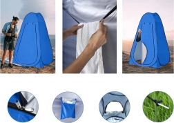 Praktikus és univerzális magánszféra-sátor utazáshoz – szolgálhat öltözőként, zuhanyként és WC-ként is. Önfelálló, vízálló, és összehajtva minimális helyet foglal. Belül tágas zseb, ruhákhoz akasztós szalag és szellőzőablak gondoskodik a jobb légáramlásról.