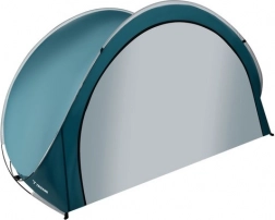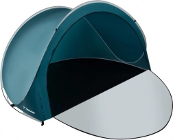 A kétirányú cipzárnak köszönhetően a bejárat részben vagy teljesen lezárható, így a holmik bent biztonságban vannak a homoktól és portól. A strapabíró poliészter és a stabil üvegszálas váz megbízhatóságot nyújt szeles időben is, a csomag tartalmaz leszúró készletet, feszítőzsinórokat és hordtokot a szállításhoz.