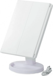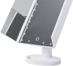 Elegáns, tripla kozmetikai tükör LED háttérvilágítással, amely fényes, egyenletes, árnyékmentes képet ad. A fő panelt szegélyező 22 LED-dióda megkönnyíti a precíz sminkelést, a szemöldökformázást és a borotválást. Az előlapi érintőkapcsoló gyors bekapcsolást és kényelmes vezérlést biztosít.