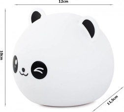 Aranyos, puha szilikonból készült panda alakú gyerek éjjeli fény, amely kellemes, megnyugtató fényt visz minden gyerekszobába. Könnyen érintéssel vagy koppintással vezérelhető, 5 világítási módot kínál, beleértve a folyamatos RGB váltást, és a 3× AAA elemmel való tápellátásnak köszönhetően ideális az éjjeliszekrényre vagy az ágy mellé. A burkolat könnyen tisztítható, az anyag strapabíró, biztonságos és éles szélektől mentes.