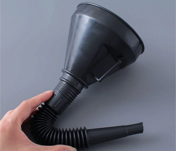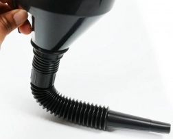 A tölcsér rugalmas csúcsa lehetővé teszi a kényelmes folyadék öntést különböző szögekben, megkönnyítve a feltöltési folyamatot.