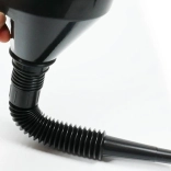 Egyszerű kezelés a rugalmas csúcsnak köszönhetően, amely könnyen igazítható bármilyen szöghez. Két részes kialakítás lehetővé teszi a könnyű tisztítást és tárolást. A bemeneti finom szűrő megakadályozza a szennyeződések, mint a homok vagy fűrészpor bekerülését.