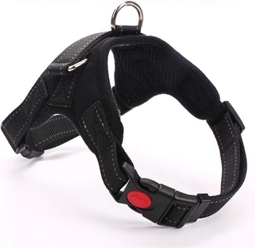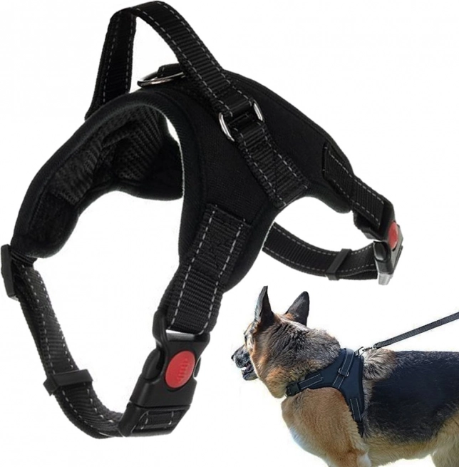 A hám masszív pórázrögzítéssel és fogantyúval van ellátva, amelynél fogva a gazdi közvetlenül is tarthatja az állatot.