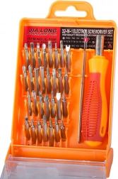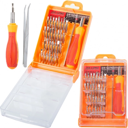 Ez a praktikus 32 az 1-ben precíziós csavarhúzókészlet ideális elektronikák, mobiltelefonok, laptopok, órák és szemüvegek javításához és karbantartásához. A króm–vanádium acélból készült, kiváló minőségű bitek nagy szilárdságot, kopás- és korrózióállóságot biztosítanak, és a mágnesességnek köszönhetően megkönnyítik az apró csavarok kezelését.