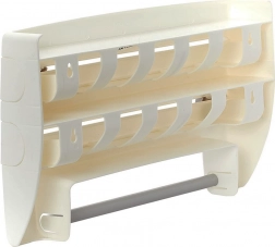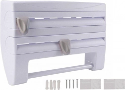 A szervező szabványos tekercsszélességekhez készült (fólia 31 cm-ig, papírtörlő 27 cm-ig és kb. 10 cm átmérőig). A tekercsek cseréje pillanatok műve – felnyitod az előlapi fedelet, beteszed az új tekercset, majd visszazárod. A csomag minden szükséges szerelési tartozékot tartalmaz a falra rögzítéshez.