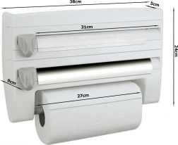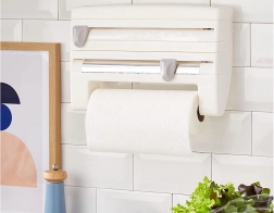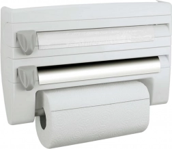 Teremts rendet a konyhában a praktikus, falra szerelhető 4 az 1-ben szervezővel, amely az alumíniumfóliát, az élelmiszerfóliát és a papírtörlőt is tárolja, ráadásul felső polcot kínál fűszereknek és apróságoknak. A precíz, rejtett pengéknek köszönhetően a fóliákat gyorsan, recés szélek nélkül tépheted le; a szerelés egyszerű, és szabványos tekercsekhez (fólia 31 cm-ig, papírtörlő 27 cm-ig) alkalmas.