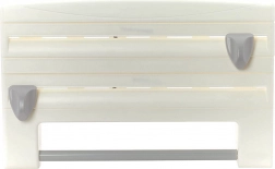 Az okos 4 az 1-ben konyhai szervező helyet és időt takarít meg: két rekesz az élelmiszer- és az alumíniumfóliának, papírtörlő-tartó és egy praktikus fűszertartó polc tart mindent átláthatóan egy helyen. Az éles, mégis biztonságosan elrejtett pengék tiszta, egyenes vágást biztosítanak rojtosodás és felesleges pazarlás nélkül.