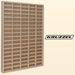 A KRUZZEL fa polc okos és dizájnos megoldás minden kicsi és nagy gyűjtő számára. A 90 különálló rekesznek köszönhetően minden modell mindig szem előtt és kéznél lesz. Az elegáns, természetes, rétegelt lemezből készült kivitel a legtöbb enteriőrbe illik, és egyben stílusos dekorációja a gyerekszobának.