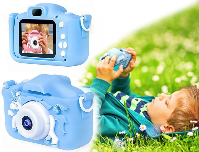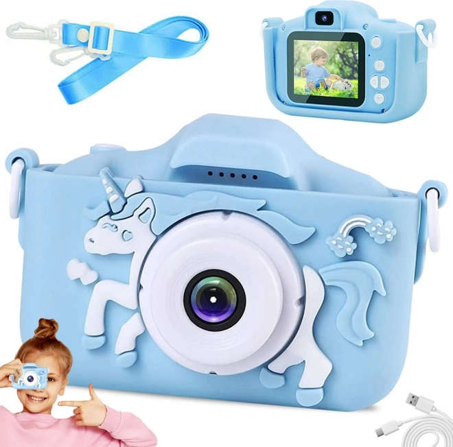 Többfunkciós gyermek fényképezőgép egyszarvú alakban, örömet okoz és fejleszti a kis fotósok kreativitását. Ideális az emlékek és élmények megörökítésére.